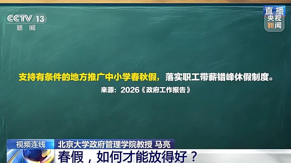 马亮:我们可以看到对于职工的带薪休假、弹性休假一直有相关的制度规定。今年希望借助春秋假这样一个撬动机制,带动带薪休假、弹性休假的政策落实。从这一点可以看到,各地都在加强跨部门的协同,配合家长和孩子共同出行。